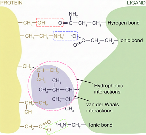 These highly specific strong binding interactions between immobilized ligand and target biomolecule are attributed to electrostatic, hydrogen bonding, hydrophobic interactions, and van der Waals' forces.