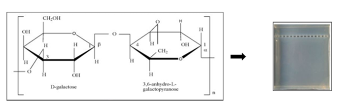 Gel electrophoresis is the standard lab procedure for separating DNA by size (length is measured by base pairs) for visualization and purification. It is one of the most widely-used techniques in biochemistry and molecular biology. Agarose is a linear polymer composed of alternative residues of D-galactose and 3,6-anhydro-L-galactopyranose joined by α (1→3) and β (1→4) glycosidic linkages as shown in the figure below. It is extracted and purified from seaweed (red algae). Agarose forms a gel matrix of agarose molecules which has channels and pores through which molecules are able to pass.