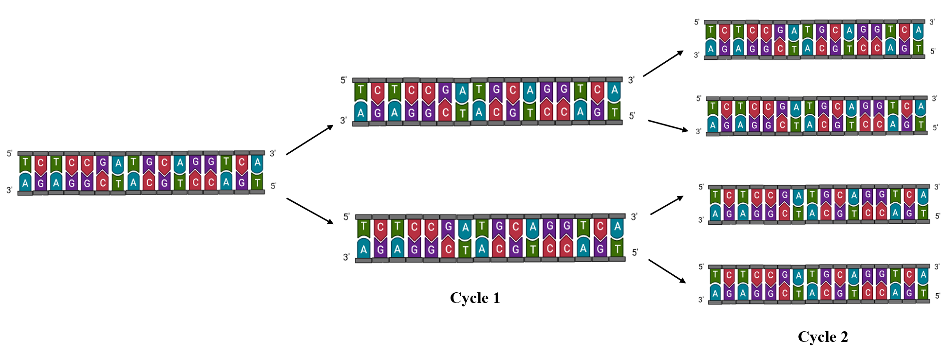 Fig 2: Schematic representation of the PCR amplification reaction upto cycle 2.