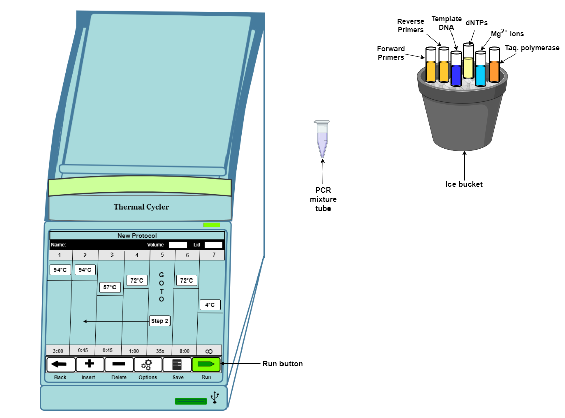 - Thawing the PCR reaction components on ice and Preparation of the PCR reaction mix