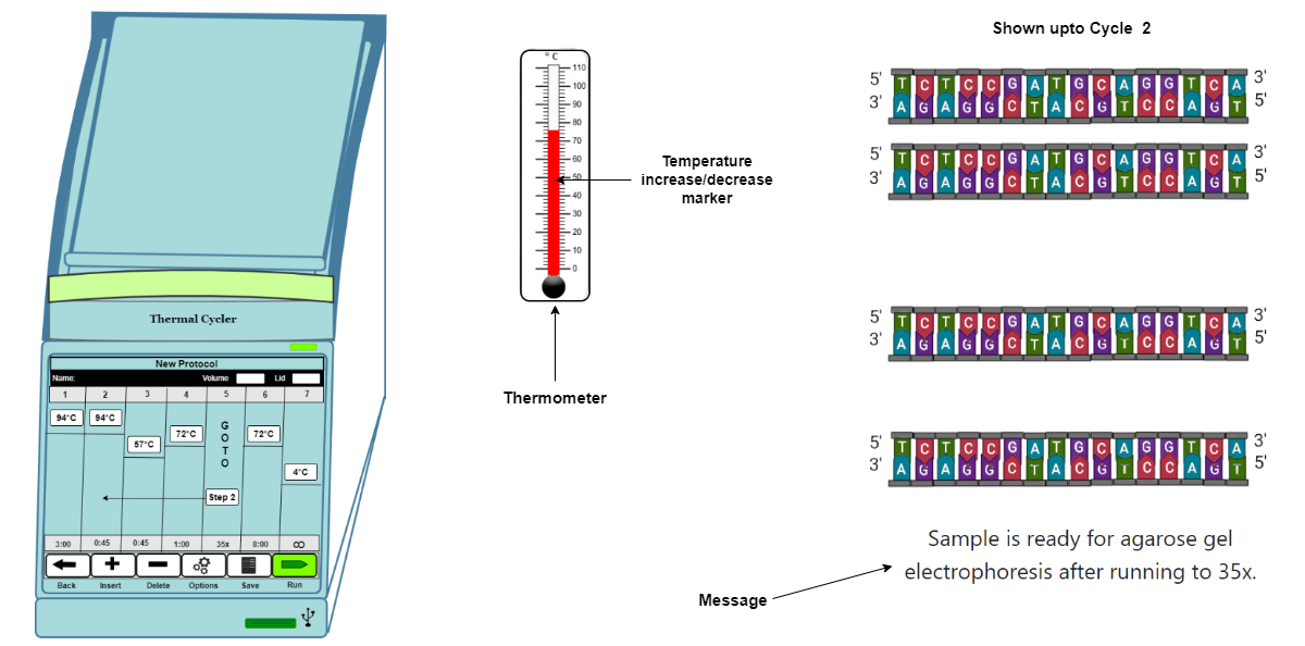 - Incubation of the PCR reaction mixture in a thermal cycler
