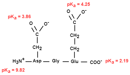 10. Calculate the pI of the tripeptide Asp-Gly-Glu.