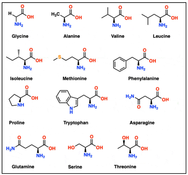 Figure 2: Structure of 20 common naturally occurring amino acids