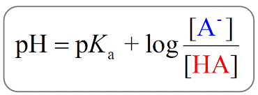 According to Henderson Hesselbalch equation (Figure 4), the pH equals pKa (the quantitative measure of the strength of an acid) when the concentration of the acid (HA) is the same as that of its conjugate base (A-). Lower pKa values mean a stronger acid. The pKa is the pH at the mid-point of the flat buffering zones in a titration plot (pH vs volume of titrant). Table 1 lists out the pKa and pI values of each amino acid along with their properties.